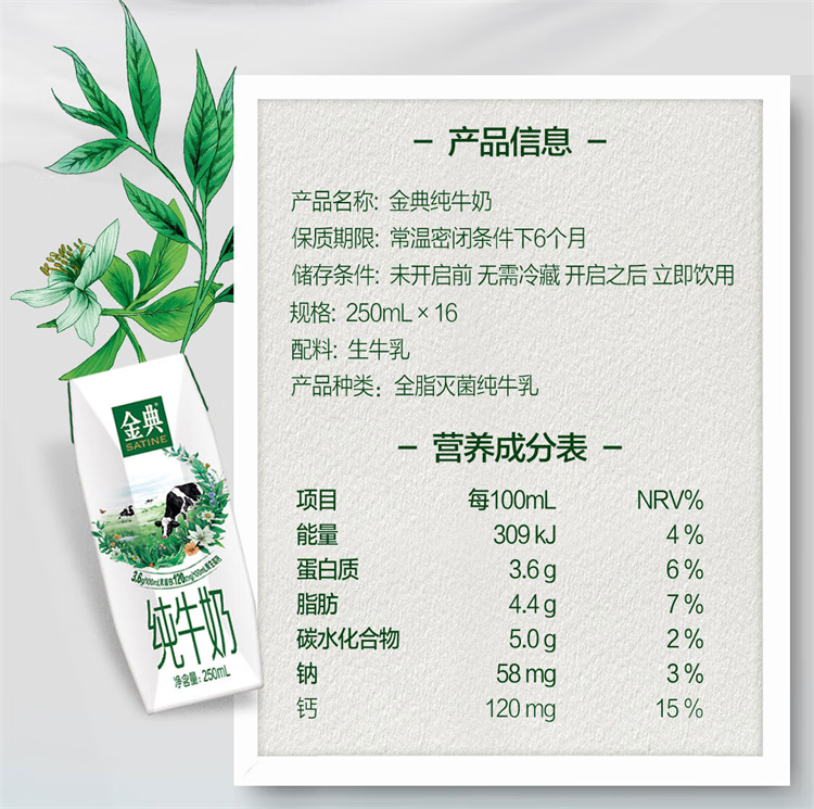 伊利金典纯牛奶整箱 250ml*16盒 3.6g乳蛋白 年货礼盒装