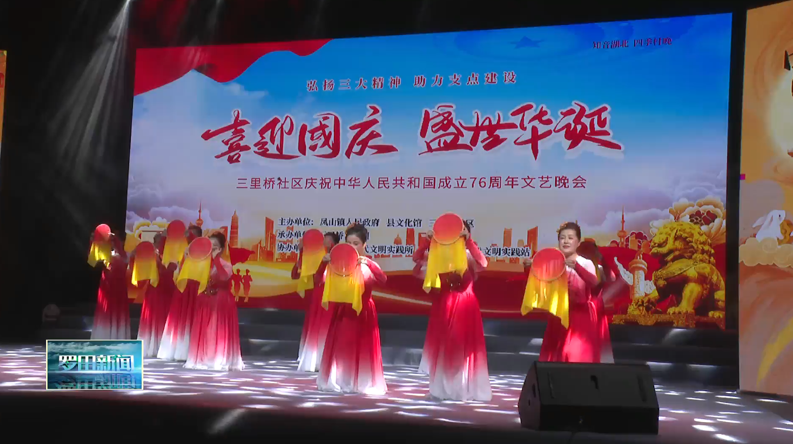 近日,由凤山镇、县文化馆、三里桥社区联合主办的“弘扬三大精神 聚力支点建设”主题文艺晚会举行,社区居民欢聚一堂,载歌载舞,庆祝中华人民共和国成立76周年和中秋佳节的到来。县领导胡凌海出席。