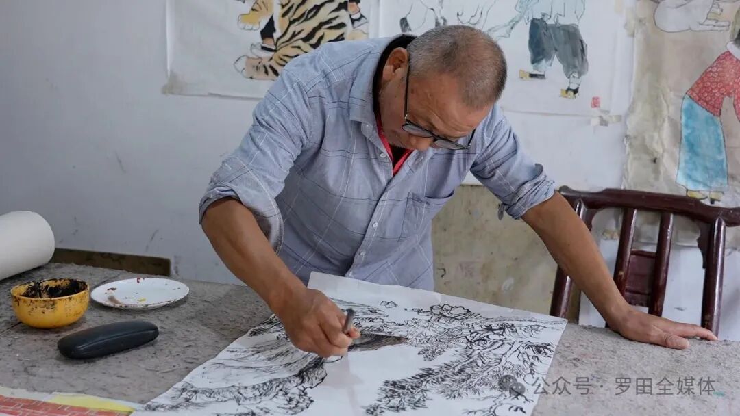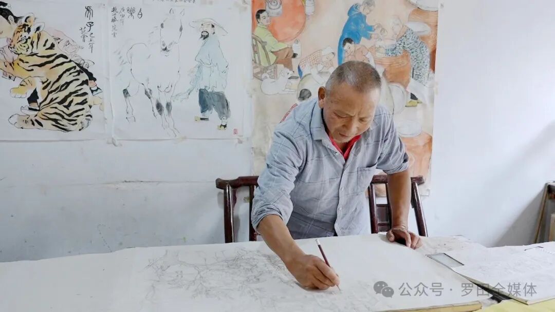 在罗田县有一位68岁的农民画家,他用四十多年的辛勤创作,将乡土记忆与时代精神凝练成一幅幅鲜活的画卷,从田间地头的劳动场景到抗洪救灾的壮阔画面,从传统农耕的质朴韵味到红色文化的现代演绎,他的画作不仅记录了乡村变迁,更成为传承楚文化、弘扬大别山精神的生动载体,他就是农民画家李兴世。