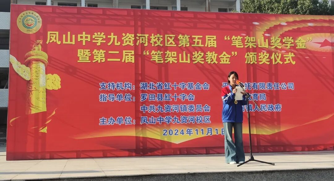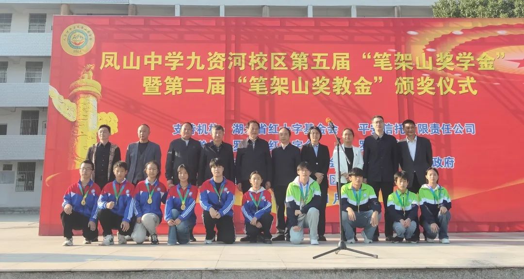 秋风送爽、乌桕似火。11月1日,第五届“笔架山奖学金”暨第二届“奖教金”颁奖仪式在凤山中学九资河校区隆重举行。省红十字会党组成员、秘书长陈波,省红十字会办公室三级调研员艾国章,县政协副主席、县工商联主席何晓艳,县红十字会、县教育局、九资河镇相关领导以及笔架山奖学金、奖教金发起人和捐赠人代表等参加活动。
