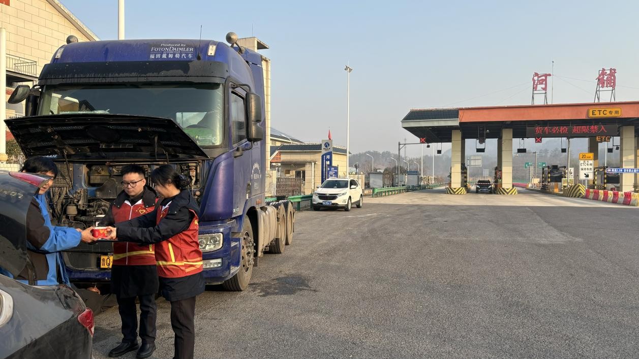 服务春运、情暖破霜暖人心。一辆货车在外广场附近突发故障抛锚,管理所工作人员迅速赶到。一边帮忙联系维修人员,一边贴心送上热汤和饺子,帮助货车司机顺利回家。