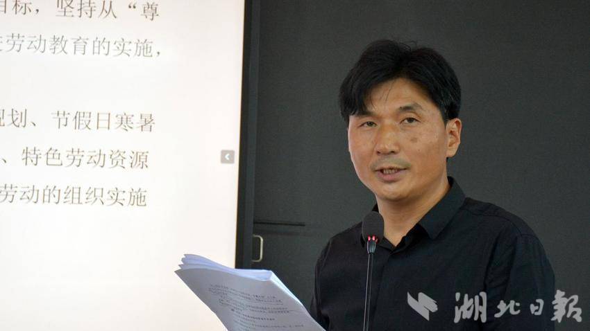 在劳动课题工作汇报交流中,县城南新区小学白庙河校区的江小波老师带来了《基于家校协作的乡村小学劳动周课程实施的研究》的工作报告。他详细介绍了白庙河校区在劳动周课程实施过程中,如何充分发挥家校协作的作用,整合家庭和学校的资源,为学生提供丰富的劳动实践机会。通过家校合作,学生们在家庭和学校中都能参与到劳动中来,劳动教育得到了更有效的实施。