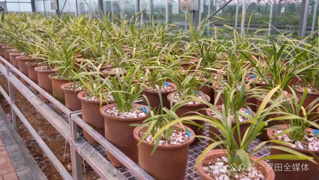 除了热闹的交易区,智能培育温棚更是园区的核心引擎。走进温棚,恒温恒湿的环境让人倍感舒适,一排排培育架上,不同品种的兰花长势喜人。