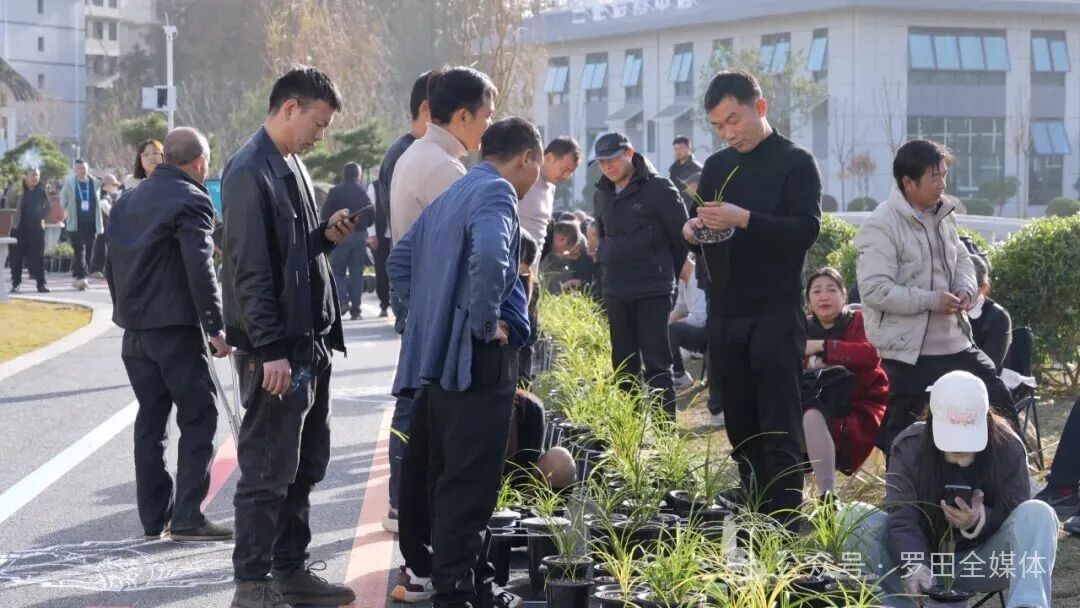 走进兰花产业园交易区,数十个展位整齐排列,春兰、蕙兰、墨兰等各类兰花盆栽摆放得错落有致,嫩绿的兰叶舒展飘逸,淡雅的花苞点缀其间。游客们穿梭在展位之间,或拿起手机拍摄,或与兰商攀谈询价,现场交易十分火爆。