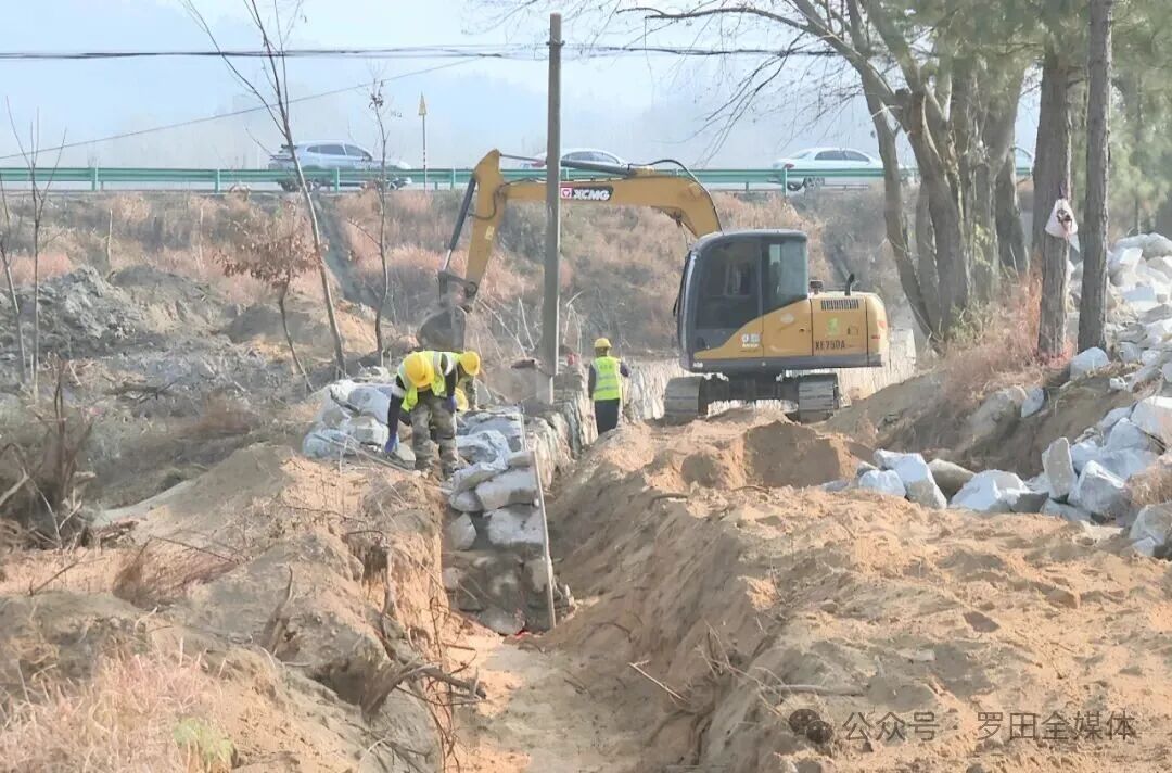 在河铺镇凉亭河村高标准农田建设现场,施工人员正抢抓冬季枯水期,按照县农业农村局和施工单位技术人员的指导,全力推进工程进度。