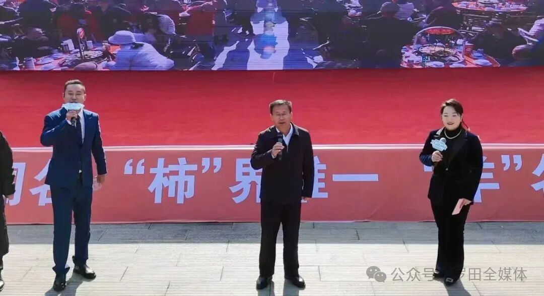 活动现场氛围感拉满。南场的千人吊锅宴上,胜利吊锅城“吊锅王”坐镇C位,烤全羊现制现烤香气扑鼻,20个自助烧烤架供游客尽情体验,甜柿饮料展示台与便携吊锅产品区人气十足。