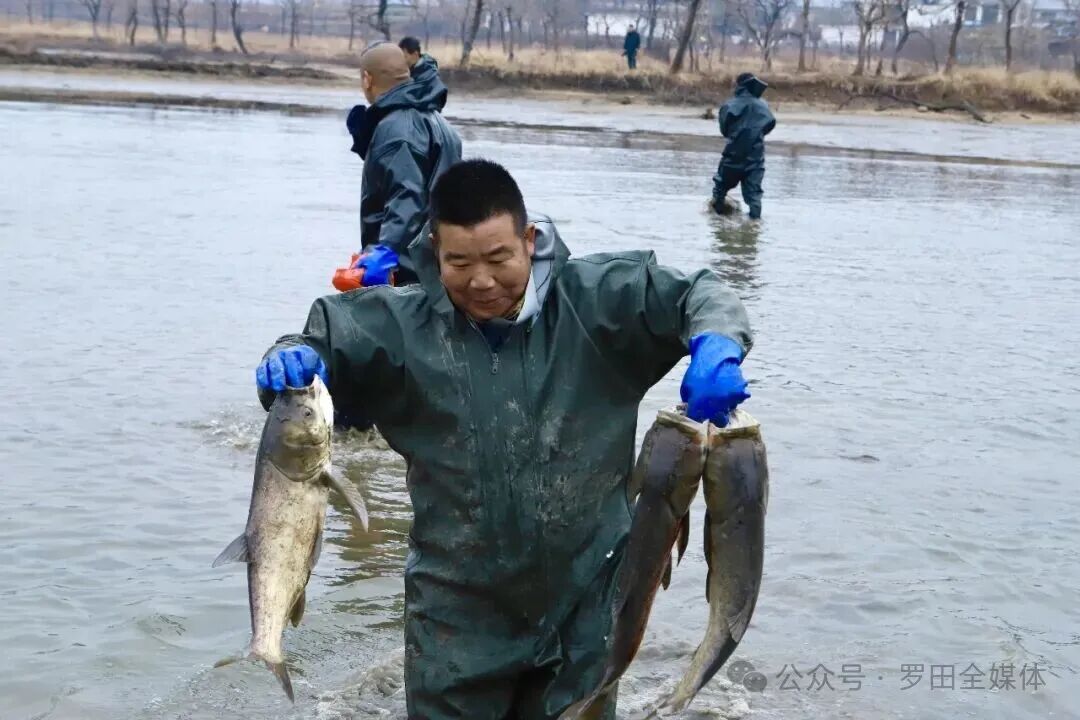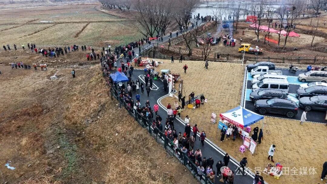 红叶湖边的抓年鱼现场更是热闹非凡。一张张渔网缓缓拉开,肥美的鲜鱼在网中跳跃翻腾,水花四溅,围观的游客们纷纷拿出手机记录这壮观的瞬间,时不时发出惊喜的惊呼。捕获的鲜鱼被迅速送至指定区域,幸运的游客可以将自己的“战利品”免费带走,脸上满是丰收的喜悦。