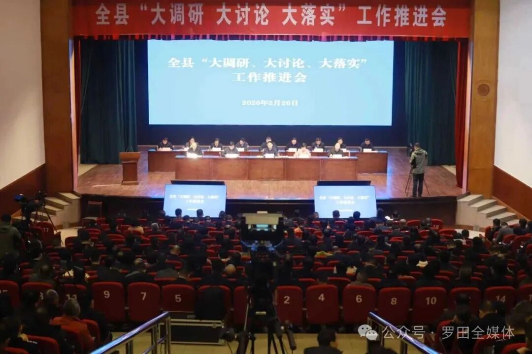 2月26日,罗田县以电视电话会议的形式召开全县“大调研、大讨论、大落实”工作推进会。会议强调,要聚焦高质量发展这个主题,凝聚思想共识,从实际出发、向发展聚焦、按规矩办事,围绕工业经济、特色农业、县城建设管理、文旅康养等四大领域,持续深化“大调研、大讨论、大落实”工作,保持定力、精心运筹,一步一个脚印,集中精力办好自己的事、办好罗田的事,在积小胜为大胜中闯出新路、赢得未来。