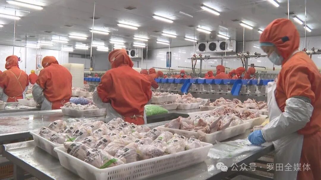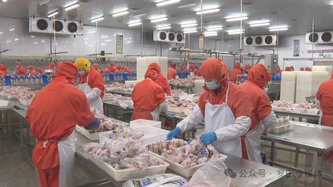 主持人 陈俊宇 观众朋友们,我现在正在湖北同一食品的食材分拣与加工车间。这里的肉鸡原料均来自罗田及周边的标准化养殖基地,源头可溯、新鲜安全。经过严格的分拣、标准化屠宰与精深加工,从生鲜禽肉到预制食材、休闲的肉制品快速成型。车间内工人分工协作、高效运转,指尖忙碌的守护舌尖安全,全力跑出复工复产 “加速度”,也为本地农户稳定增收托起了坚实保障。