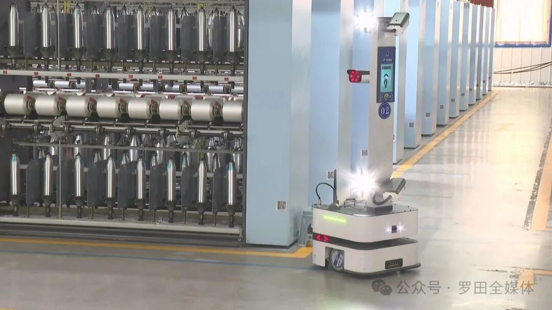 在湖北智梭纺织的生产车间,千余台国内先进的喷水织机高速运转,纱梭飞旋、织声阵阵,下布机器人和倍捻巡检机器人来回穿梭,精准完成落筒、巡检等作业,自动化穿综、智能物流系统无缝衔接,整个车间井然有序、活力满满,智能化设备的高效运转,让传统纺织产业焕发新活力。作为2023年落户园区的重点招商引资企业,智梭纺织总投资3.2亿元,通过持续的智能化改造,用人成本大幅降低、产品质量稳步提升,单品价格显著提高,成为罗田县纺织产业转型升级的标杆。