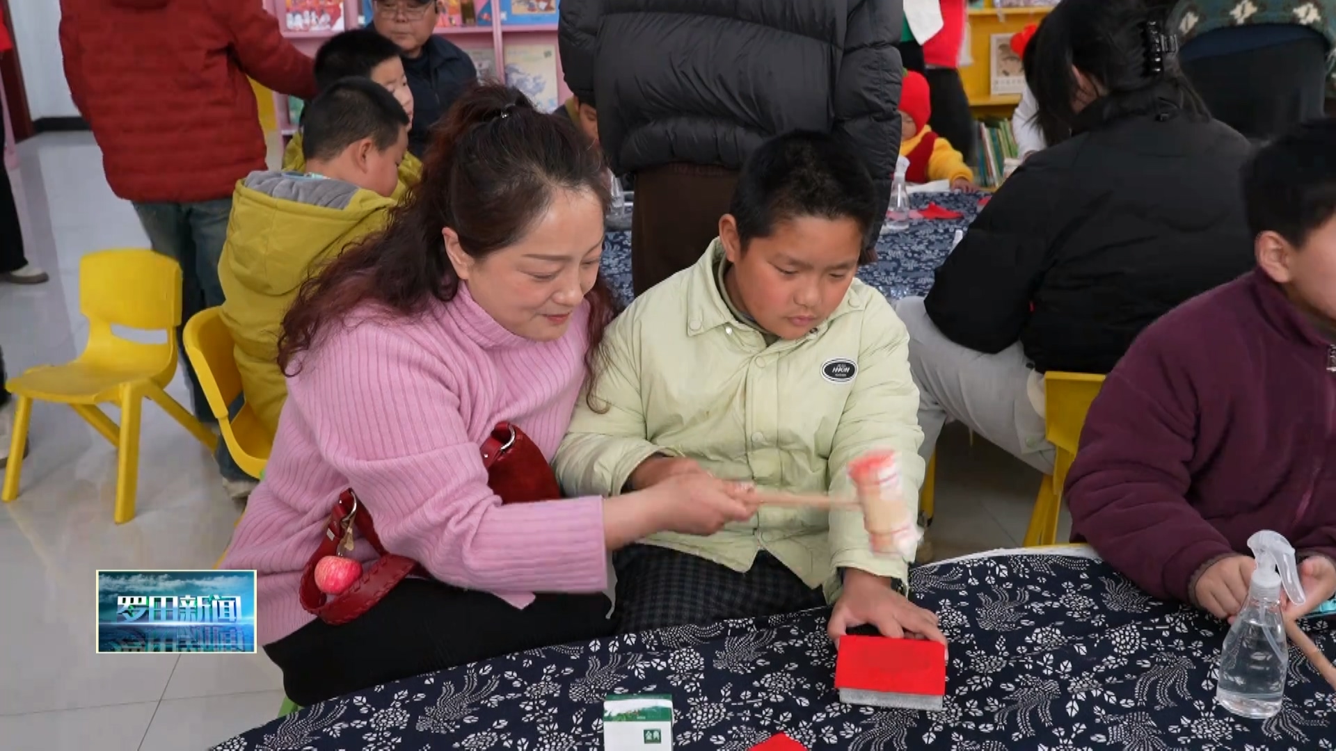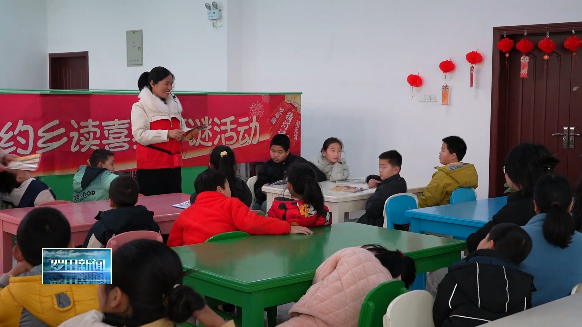 记者 黎淇淇:观众朋友们,我现在是在罗田县图书馆的活动现场,大家可以看到这里已经充满了节日的喜庆,不少家长和小朋友已经迫不及待了。现在正在进行的是乡约乡读 竞猜灯谜元宵节活动,大家不用预约,来了就能参与,既能猜灯谜赢好礼,还能体验非遗拓印的乐趣。
