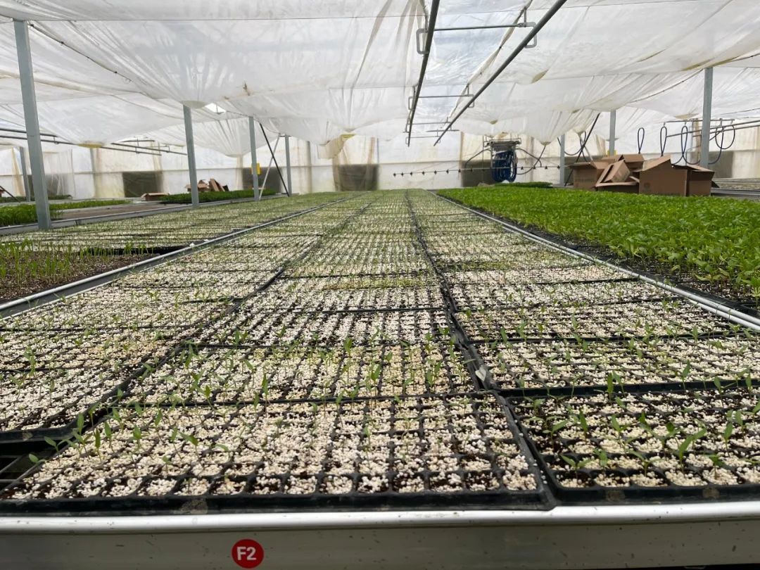除了机械化点种外,萌升农业还配备了智能栽培系统精确控制,通过大棚内的智能传感器实时监测温度、湿度等关键指标,引入自动喷灌系统进行智能调节,确保为种苗提供最佳的生长环境,彻底改变了过去散播种植、看天吃饭且经济效益不高的局面。