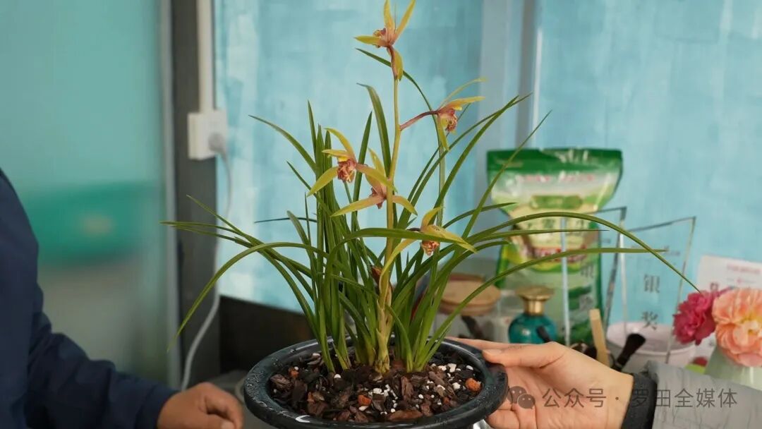 兰花种植既要精准辨识品种,也要精通浇水、施肥、翻盆、防虫等全套技术。为练就过硬本领,邓益跟着师父和团队成员奔赴各地参加各类兰花交流展会,在实践中勤学多问、摸索总结,一步步掌握了兰花种养与经营技巧。