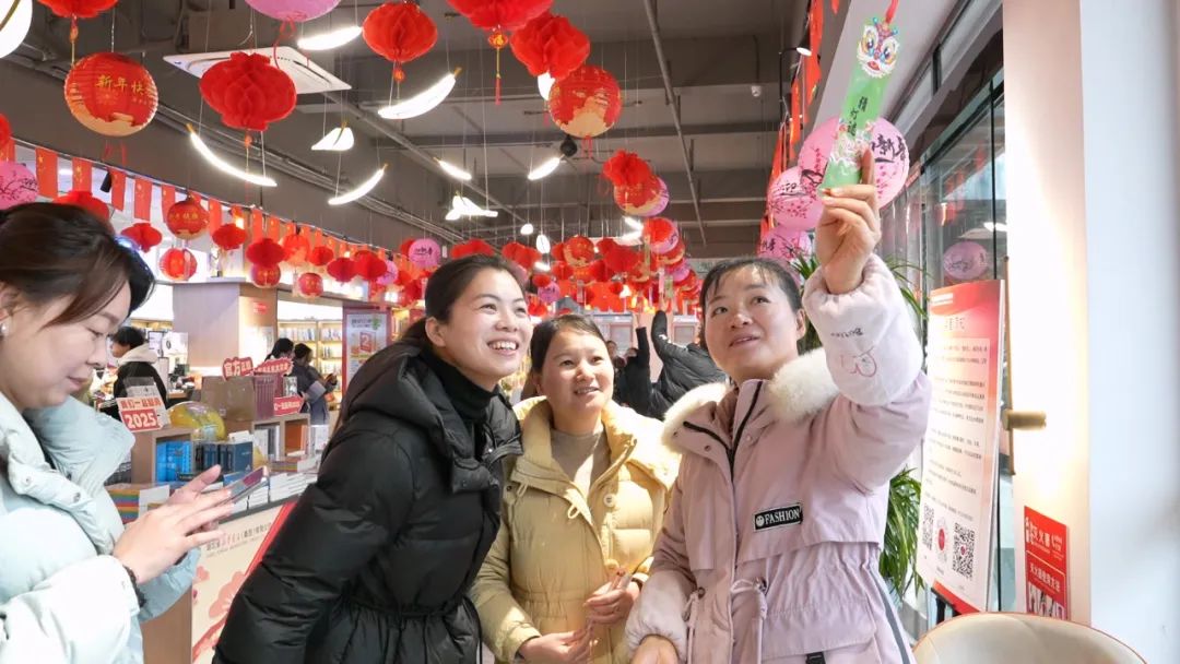 在县新华书店活动现场,灯谜卡片高高挂起,等待大家揭开谜底。灯谜内容涵盖文学知识、历史典故、春节习俗等方面,从古典文学到现代潮流,从诗词歌赋到生活常识。大家三五成群纷纷驻足在灯谜前,摘取灯谜卡片,冥思苦想,猜出谜底时的兴奋,兑换礼物时的喜悦,全在这一刻尽情释放,现场一片欢乐。