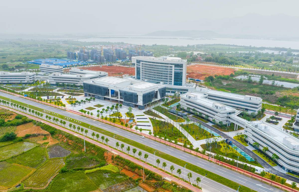 黄石大冶湖畔,投资100亿元的黄石科技城拔地而起。(湖北日报全媒记者 薛婷 通讯员 周巍 摄)