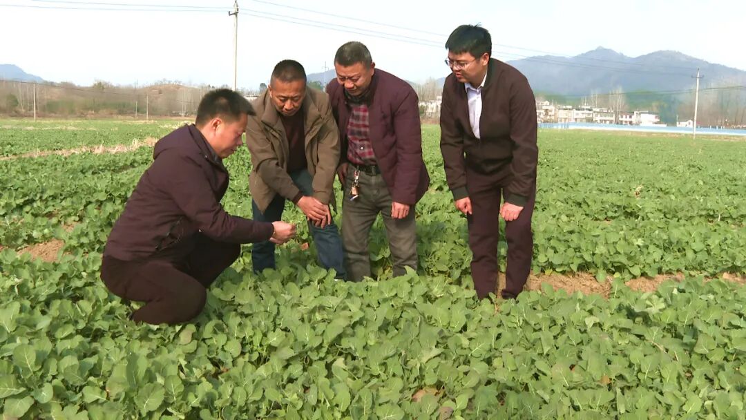 在任鹏农机服务专业合作社的油菜田里,镇党委干部、农技人员和市场主体现场查看油菜病虫害情况,因地制宜指导市场主体科学做好田间管理工作。罗田县三里畈镇农业技术推广中心主任 何勇 油菜病虫的危害主要是在这个叶的背面,吸取叶的营养,导致这个叶片内卷,再枯死,目前这个阶段主要是蚜虫的危害比较严重,我们要加强蚜虫的防治力度,选用吡虫啉的农药,亩用30毫升,兑水15公斤,防治蚜虫。