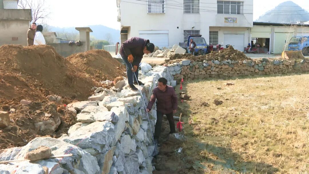 2月19日,在三里畈镇黄土坳村通往张家湾的通组公路起点,村两委干部正带领群众对通组公路扩宽工程修筑石岸,现场测量工程量,征询工人意见,全力推进施工进度。春节前夕,黄土坳村张家湾的返乡人员剧增,车流量也随之增加,村里狭窄的道路已经无法满足通行需要,三分钟的路有时要走二十分钟,影响了村民们的生活、生产和行车安全。三里畈镇黄土坳村党支部书记 雷明齐 我村这条路是2012年修的通组公路,路面只有3米5宽,现在塆大、人多、车辆多,年关时、过节时交通极不便利,造成很多伤害事故。为了解决路窄人多的困扰,村民不怨不躁、不等不靠,说干就干,开启了众筹修路模式,去年腊月底,黄土坳村召集9名村组代表,商讨扩宽通组公路的事宜,分别入户做群众思想工作。三里畈镇黄土坳村党支部书记 雷明齐 8号开完会,9号就开始行动,边放线边打标号,再把每个塆的“五小”建筑找评估公司来评价,打钱后写好协议,两天就完成了,到第3天就可以拆除,正式开工建路。