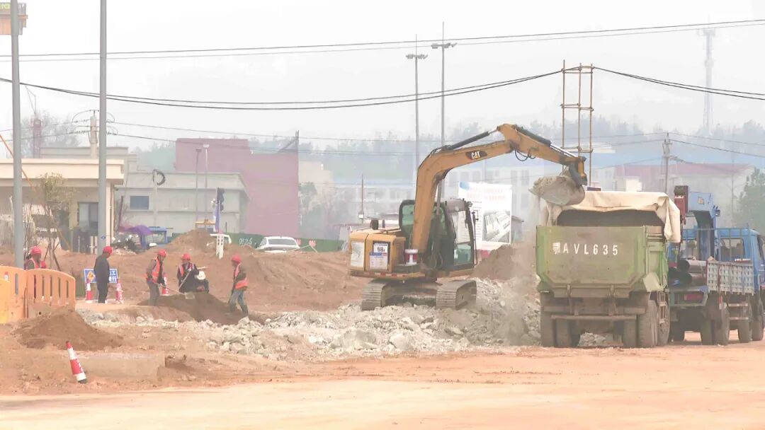 3月11日,在G318罗田县城至骆驼坳镇段改建工程园区路段,大型挖掘机、推土机往来穿梭,施工人员有的在进行路基平整作业,有的在进行桥梁钢筋焊接,整个施工现场秩序井然。