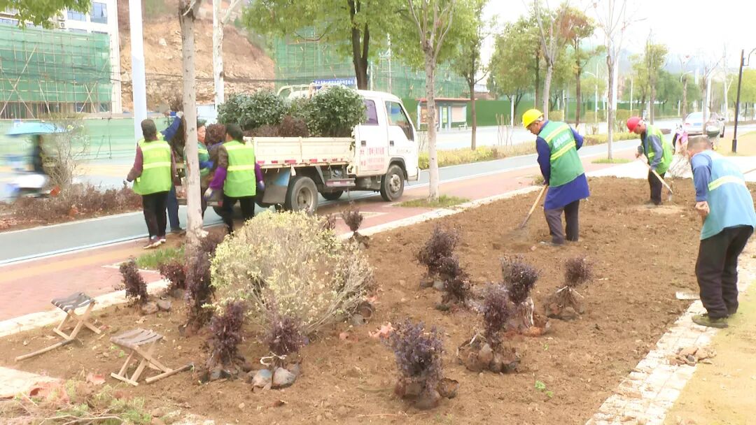 湖北万木春园林绿化公司 江峰 我们正抢抓春季黄金期,对绿化区域进行土壤改良,精选小叶黄杨、红叶石楠等优质苗木进行补栽,目前已补栽 12000 棵。下一步将对养护管段进行施肥、除草等养护工作,持续提升园林养护品质,为市民提供良好的绿化环境。