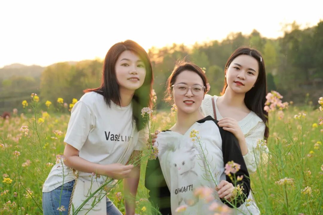 这片油菜花田位于大河岸镇谢家铺村,紧邻罗九公路,交通便利。走进花田,金黄、淡粉、紫红、橘黄等多种颜色的油菜花交织在一起,在微风中轻轻摇曳,如同一大片起伏的七彩波浪,又似一幅绚丽的天然织锦铺展在大地上。景区还新增了观景高台,游客登上高台便能将整个油菜花田的美景尽收眼底,感受独特的视觉震撼。除了自然美景,当地还在周边设置了一些休闲区域,为游客提供更丰富的游玩体验。