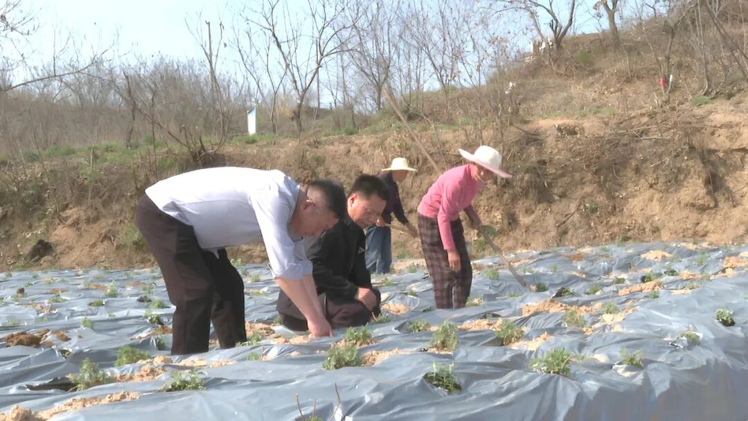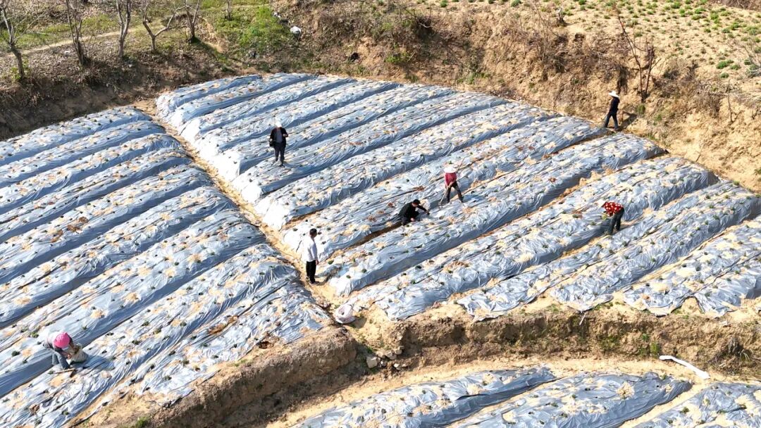 这几天,在三里畈镇裕农中药材种植专业合作社的野菊花种植基地,工人们抢抓晴好天气对田块进行补栽、压膜、修整,农技人员与合作社负责人现场指导药材种植。