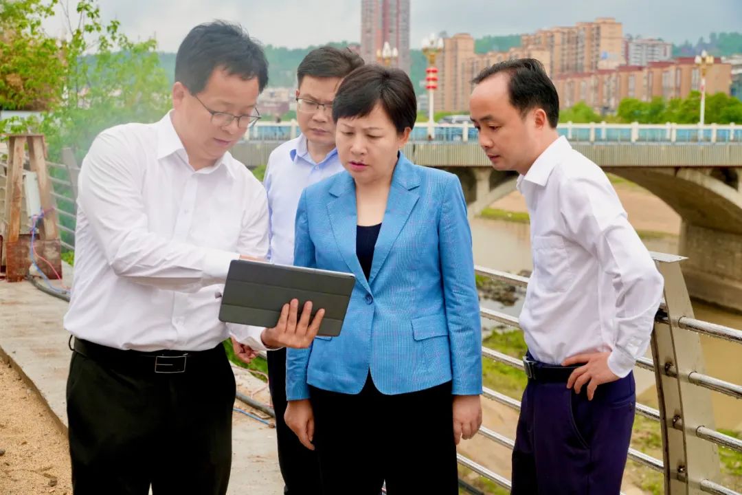 郝爱芳实地察看了义水南路老旧危桥改造、塔山河入河口排涝改造工程、义水半岛城市更新、拨云尖大桥、罗田引莲入城水厂等项目建设现场,听取项目负责人介绍规划设计、工程进度、要素保障等情况。