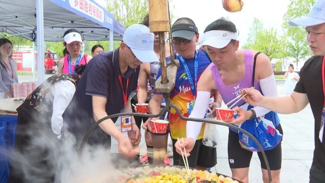 赛事不仅是一场体育竞技,更成为文化传播的载体。赛道沿线设置了绸龙舞等非遗展演,选手物料包含罗田板栗、茯苓等文创产品,终点提供非遗吊锅宴,实现“运动+美食+文化”多维体验。