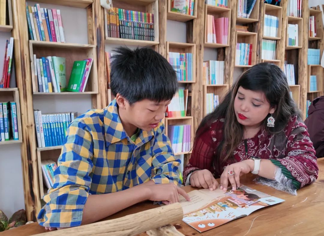 湖北工业大学泰国留学生 翁静妍:今天我来到罗田希望书屋分享文化,我感觉孩子很开心,很高兴教他们读英文。