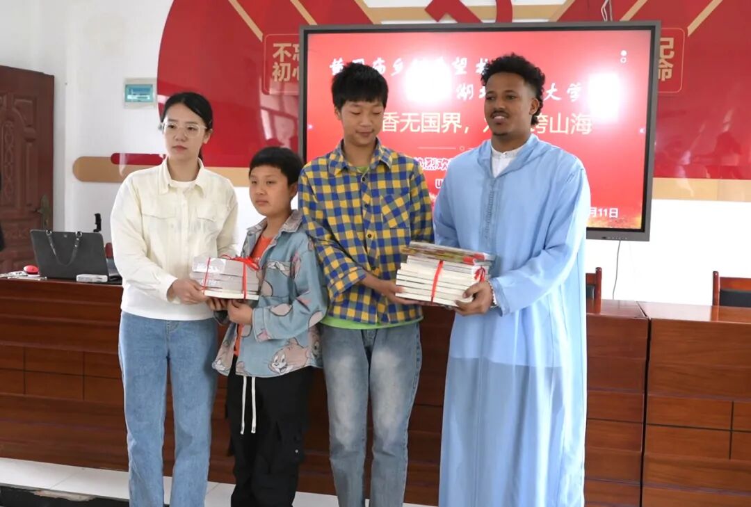除文化交流外,留学生们还向希望书屋捐赠了图书、文具和体育用品,并参与了一堂特别的“世界地理课”,通过地图、照片和故事,帮助孩子们了解不同国家的文化特色。湖北工业大学通过举办这次活动,推动教育公平与国际文化交流。