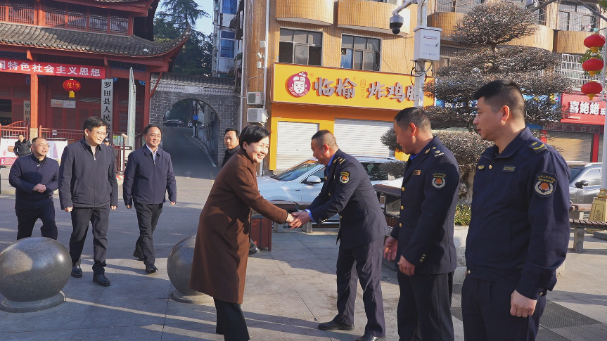 郝爱芳一行前往县人民广场,慰问了县城管执法及一线环卫工作人员,亲切地与城管队员和环卫工人握手,对他们长期以来的辛勤劳动表示由衷的敬意。郝爱芳指出,城管执法和环卫工作是城市文明形象的重要体现,希望大家在新的一年里继续发扬吃苦耐劳、甘于奉献的精神,为提升城市品质、改善人居环境作出更大贡献。