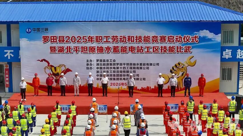 5月13日,罗田县2025年职工劳动和技能竞赛启动仪式暨湖北平坦原抽水蓄能电站工区技能比武在平坦原抽水蓄能电站项目现场举行。县领导丰峰出席启动仪式并宣布比赛开幕。