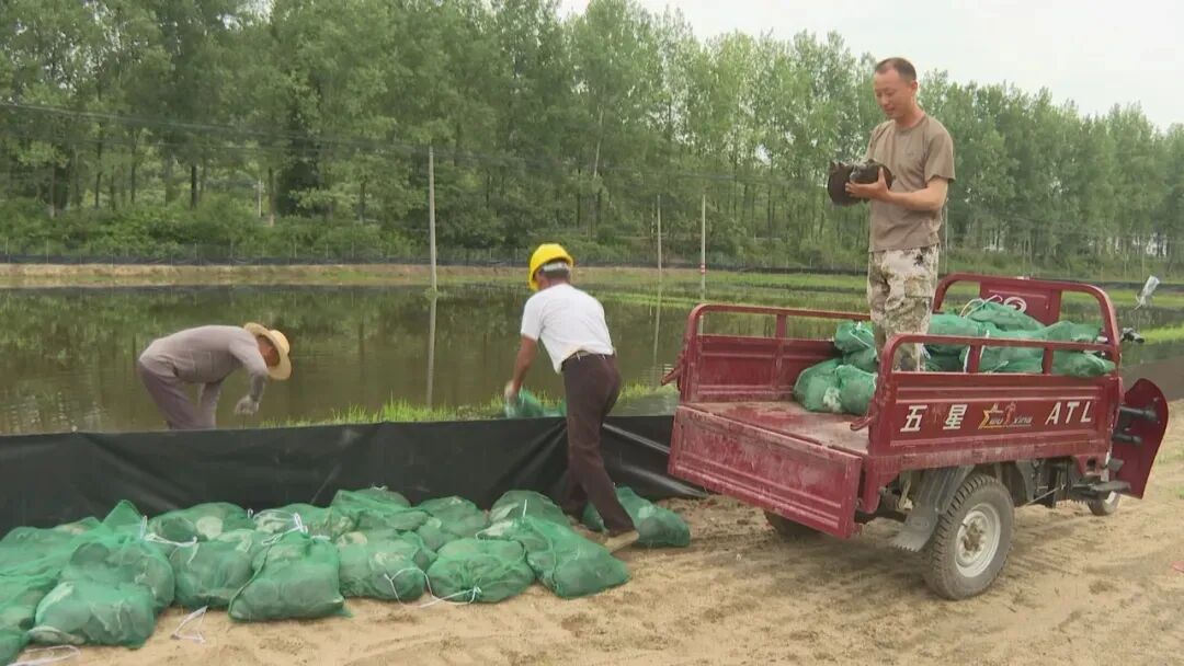 湖北禾茂水产养殖有限公司外塘负责人 董禹华:光伏外塘养殖是我们的一大特色,实现一地两用,有效盘活闲置土地资源,首批30亩光伏养殖,试投入的一批甲鱼最大的有5斤重,年产量有40多万斤,二期外塘生态养殖已成规模,年收入达到2000万元。
