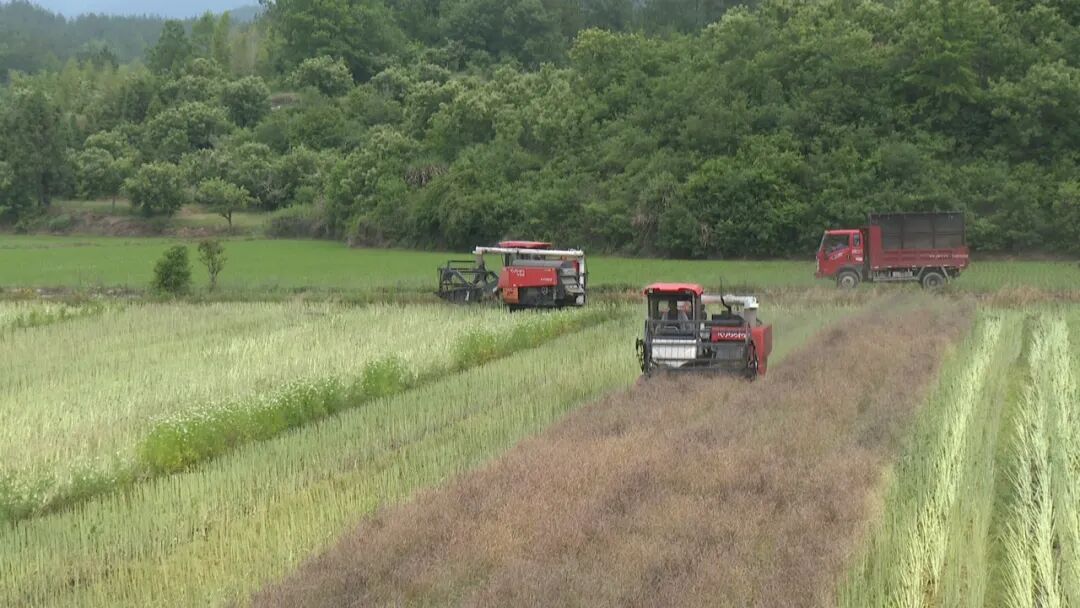 罗田县彩云种植家庭农场理事长 何立:目前种了400多亩田,有100多亩田的油菜。马上雨水季节来了,已经割了60亩,还有一半,争取在这两三天之内抢收完,之后马上要耕种水稻。