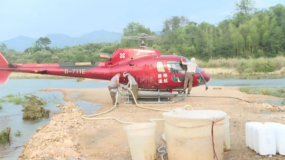 本次飞防聚焦威胁板栗生产的主要害虫板栗剪枝象,采用直升机为主、无人机补防的立体作业模式,于6月3日至5日集中开展。防治范围覆盖凤山镇、骆驼坳镇、大河岸镇等8个乡镇、172个村,总面积达19万多亩。针对复杂地形与零星地块,凤山镇、胜利镇等重点区域实施差异化防治,精准落实“科学防治、靶向治理”的技术原则。