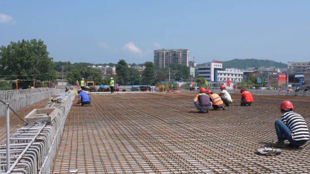 近日,记者在拨云尖大桥项目建设现场看到,机械轰鸣、焊花飞溅,工人们正紧张有序地进行桥面铺装作业。