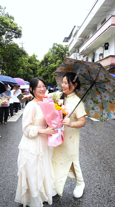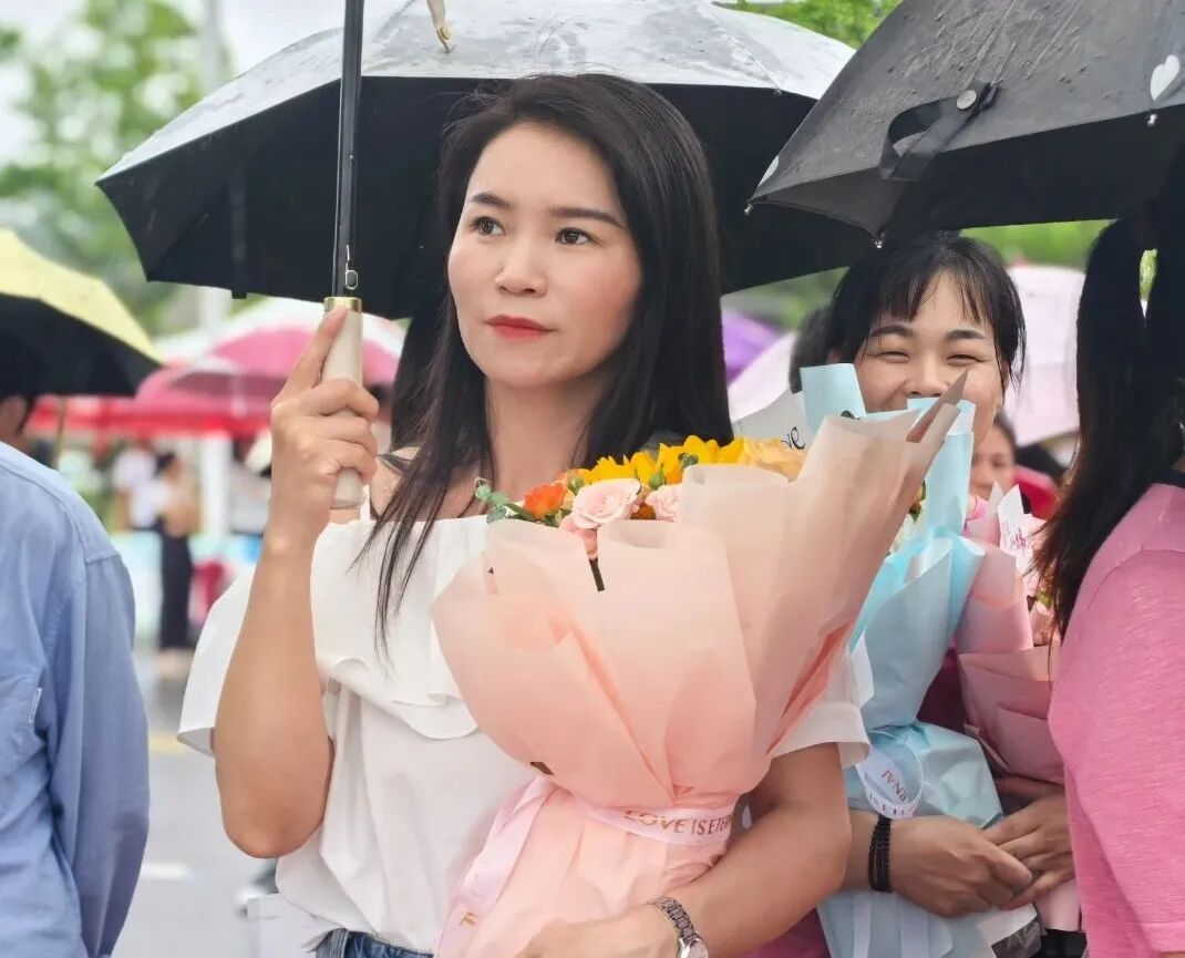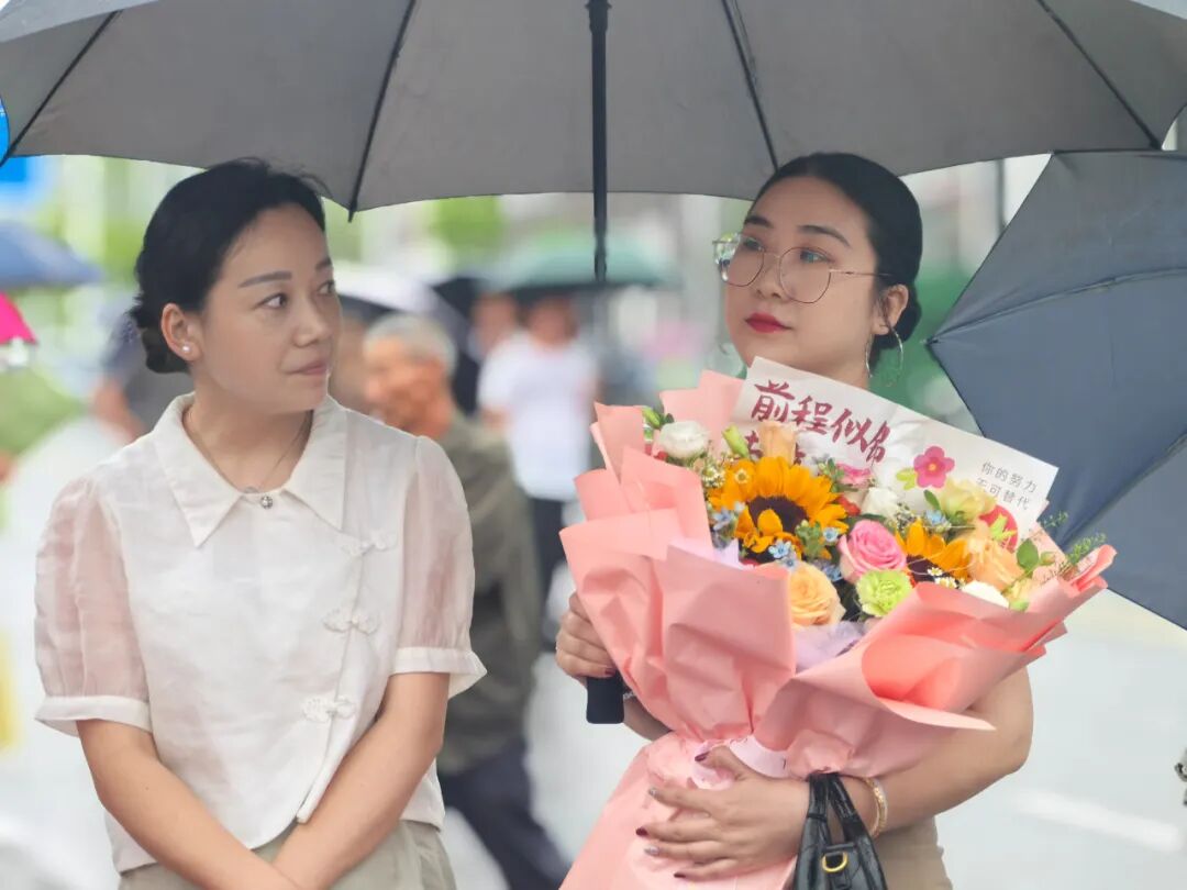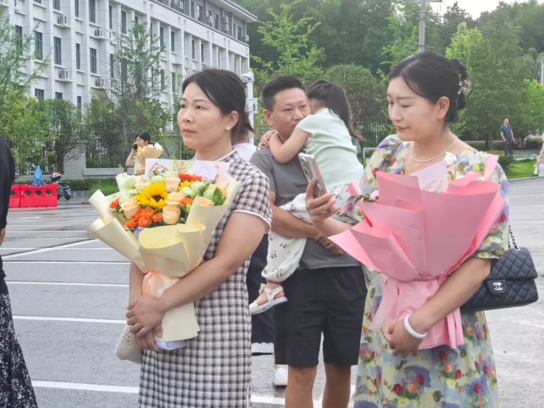 校门外,早早守候的家长们手捧鲜花,第一时间为孩子们送上最温暖的祝福和拥抱。