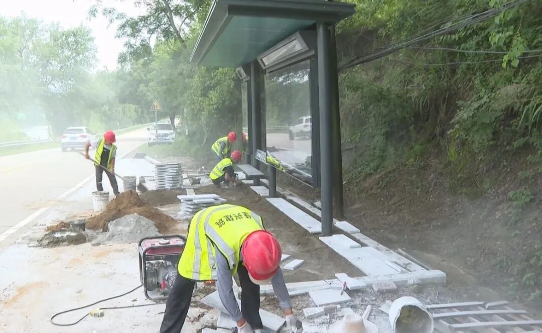 在凤山镇海螺石垸站候车亭施工现场,工人们正抢抓晴好天气,紧锣密鼓地进行基础工程施工,后续将按计划进行太阳能板与智能系统的安装。