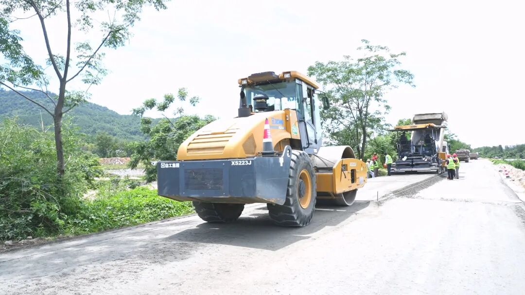 在施工现场,摊铺机平稳地将沥青混凝土摊铺在路面上,随后压路机来回碾压,使路面更加紧实平整。施工人员头戴安全帽,有的在指挥交通,保障施工路段的车辆有序通行;有的在仔细检查施工质量。据项目负责人介绍,为确保工程顺利推进,施工团队精心组织、科学调度,合理安排施工工序,在保证工程质量和安全的前提下,加快施工进度。目前,路基工程已完成大部分,路面工程正在稳步推进。