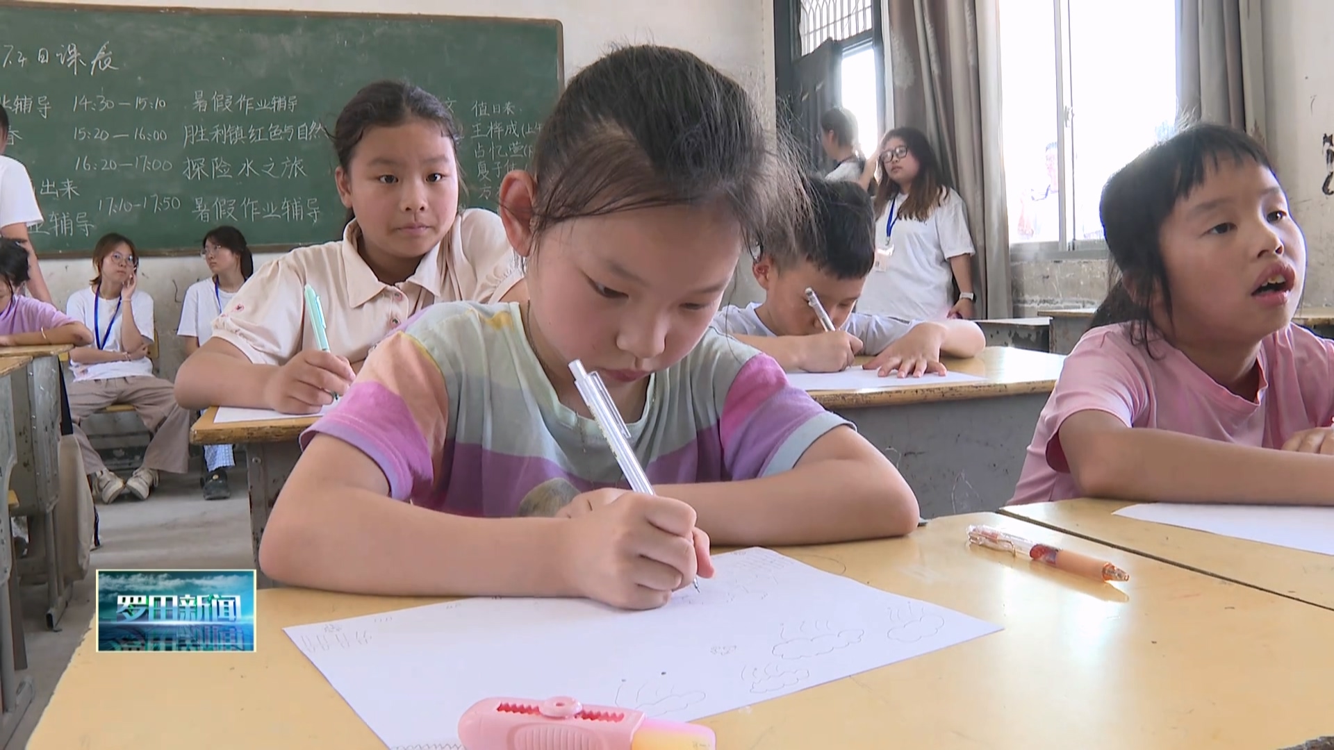 7月4日,在胜利镇宝洁希望小学的教室里,来自黄冈师范学院地理与旅游学院公益团队的大学生支教老师正在给孩子们讲解生活小技能、绘画、宇宙科学知识,孩子们积极与老师互动,一片欢乐的暑期学习氛围。