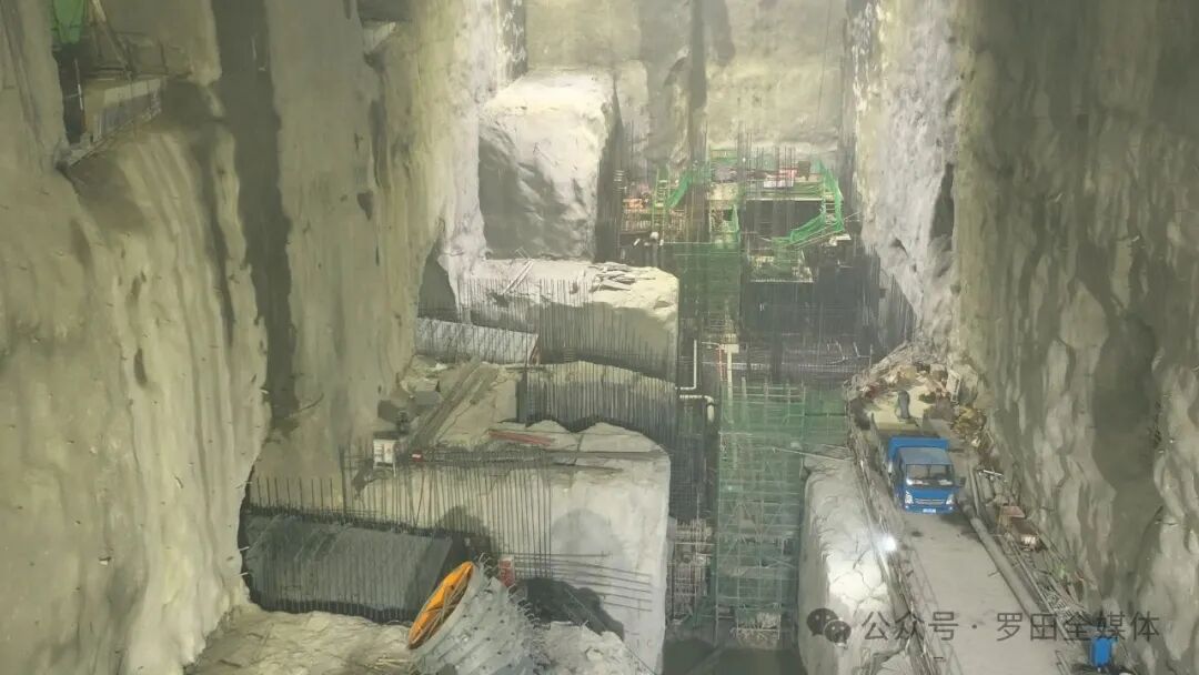 在地下厂房,机电安装工程正在加紧进行。4月底,地下厂房土建工程向机电安装工程交面,成功进入新的施工阶段。