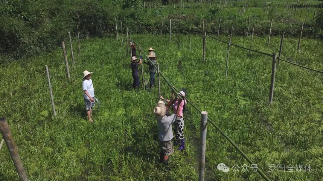 盛夏的七月,骄阳似火。在白庙河镇枫树铺村一处山坳的田间,当地村民正在为中药材基地里的石菖蒲搭建遮阳棚。