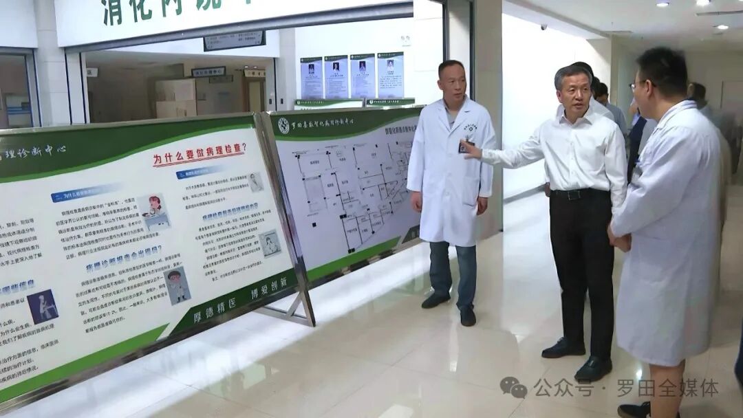 在三里畈中心卫生院,沈洪兵详细了解该院在县域医疗卫生健康数据互联互通、医防融合与慢病管理、家庭医生签约服务、名医工作室、上级专家下沉、国医堂等方面情况。在县医共体总医院,沈洪兵了解了医院在数字化建设方面的整体规划和成果,查看了会计核算中心、资源共享中心、数智化病理等中心的建设运行情况。