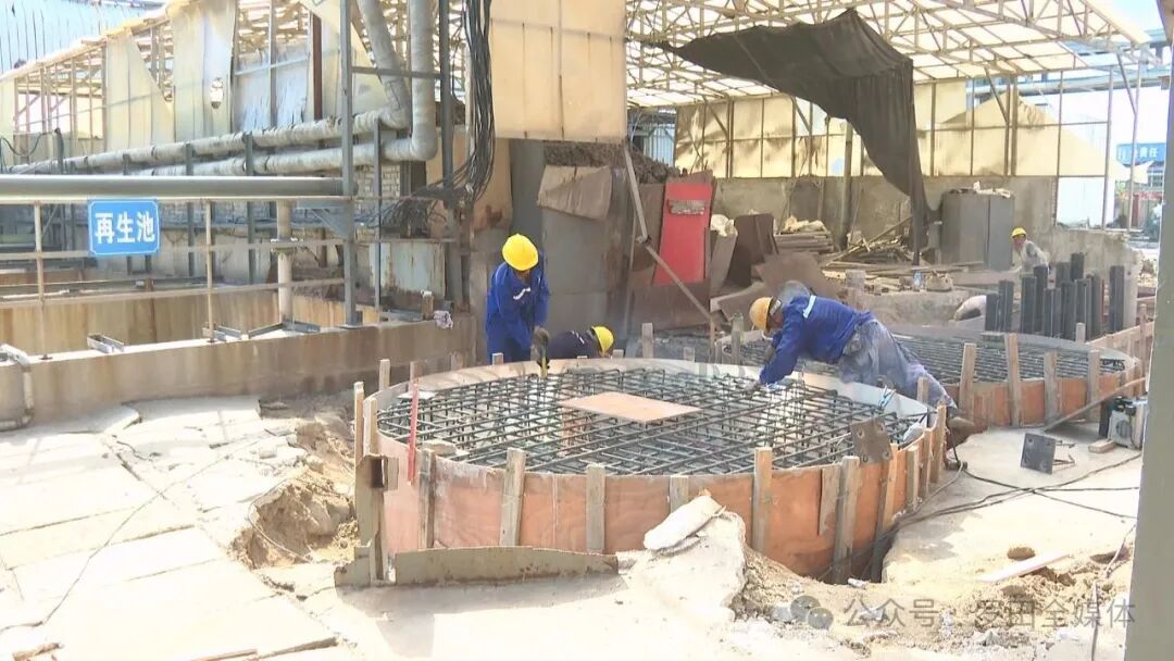 7月21日,在湖北宏源药业科技股份有限公司供热系统技术改造项目现场,施工人员正在扎钢筋、装模板。黄冈市生态环境局罗田县分局的工作人员赶到现场,查看改造进度,详细了解改造达标情况,确保项目在建设过程中符合生态环境要求。