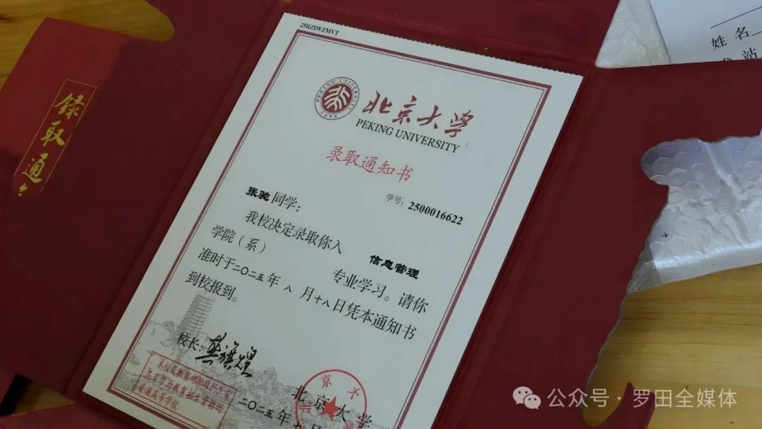 7月25日,对于罗田县一中毕业生张驰来说,是人生中意义非凡的一天——北京大学的录取通知书跨越千里,送到了他的手中。这份承载着梦想与汗水的通知书,不仅是对张驰十二年寒窗的最好回报,也为家乡增添了一份骄傲。