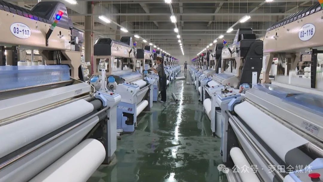 8月19日,在罗田县首家5G智慧工厂——湖北智梭纺织科技有限公司生产车间里,纱梭飞旋,机器轮转,下布机器人和倍捻巡检机器人来回巡检设备运行情况,挡车、落筒、织布等工序岗位上,工人们各司其职,忙而有序。