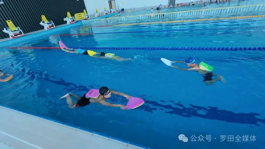 走进罗田游泳馆,50米国际标准泳池里,游泳教练耐心纠正初学者的划水动作;深水区内,几位游泳爱好者舒展双臂,在碧波中划出流畅的弧线。
