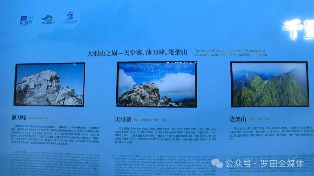 讲解员 周晓露 中国地质大学赵鹏大院士来罗田考察时,曾赞叹罗田的地质景观,提出千里大别山,根巅在罗田,这句话揭示了罗田的两大奇迹。一是根,以大崎黄土岭古陆核、凤山镇栗子坳TTG岩、骆驼坳朱家河高压榴辉岩为代表的地质遗迹点,为地球早期的演化史和大陆造山带构造发展史的研究打开了一扇窗口,堪称“大别山之根”。二是巅,由于多期造山运动,扬子板块和华北板块发生碰撞,导致大别山强烈隆升,经常年风化和雨水侵蚀等作用的叠加形成了以天堂寨、薄刀峰、笔架山为代表的雄峰、峭壁、峡谷等景观,堪称“大别山之巅”。