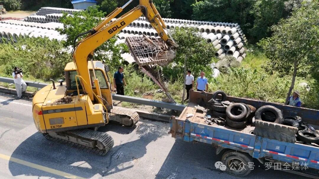 9月16日,在九资河镇汪家畈村的乡村公路旁,镇村干部正带领群众一起,通过机械和人工协同配合的方式,清理路边生活垃圾。