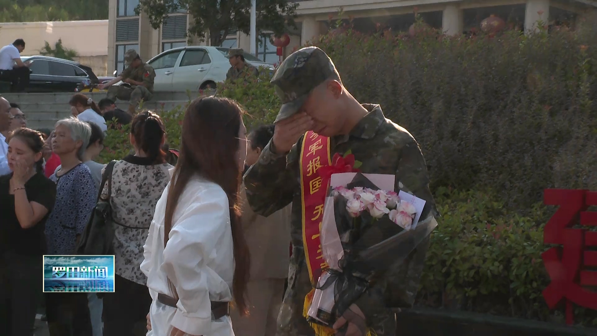 仪式现场简约而庄重,应征入伍新兵们身着迷彩服,肩披“光荣入伍”绶带,胸前的大红花格外鲜艳,他们身姿挺拔、个个精神抖擞,眼神中满是对军营的向往与担当。家属们围在身旁,或轻轻整理新兵的衣角,或紧紧握住他们的双手,千言万语都化作无声的凝望。家属眼角强忍的泪光,都是这场仪式里最真挚的牵挂,无声诉说着“小家盼团圆,大家盼安宁”的家国情怀。