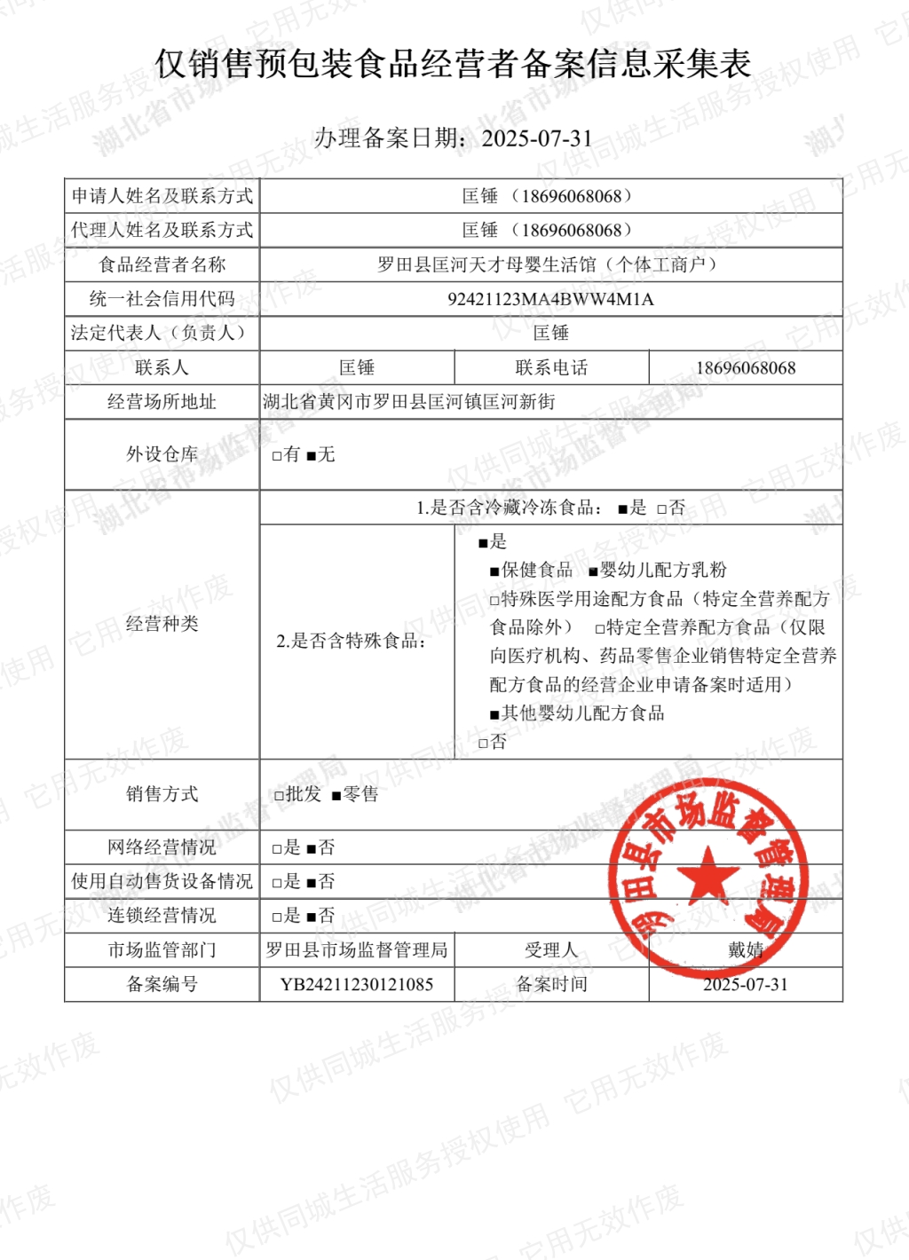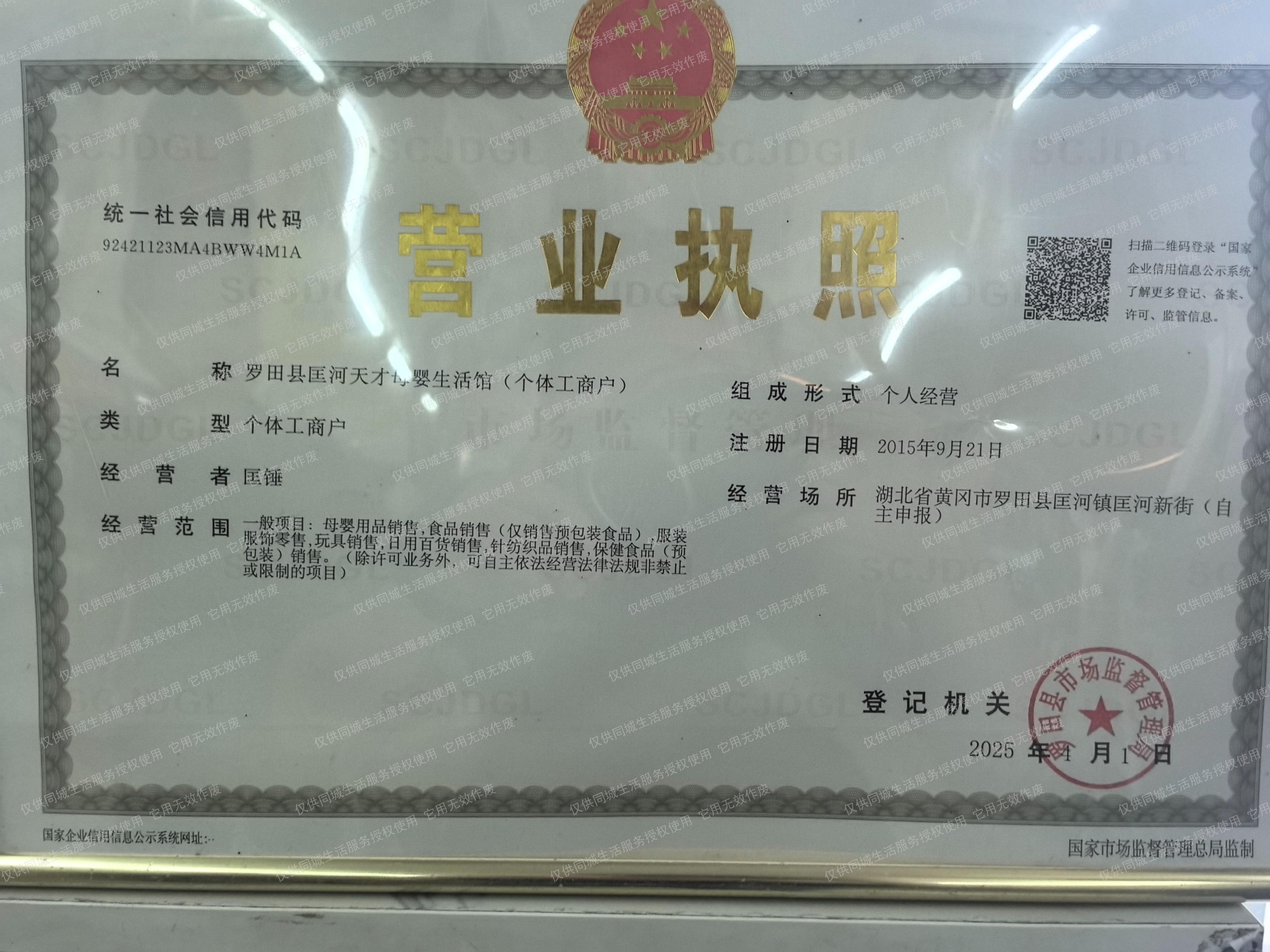 罗田县匡河镇小学旁天才宝贝母婴生活馆